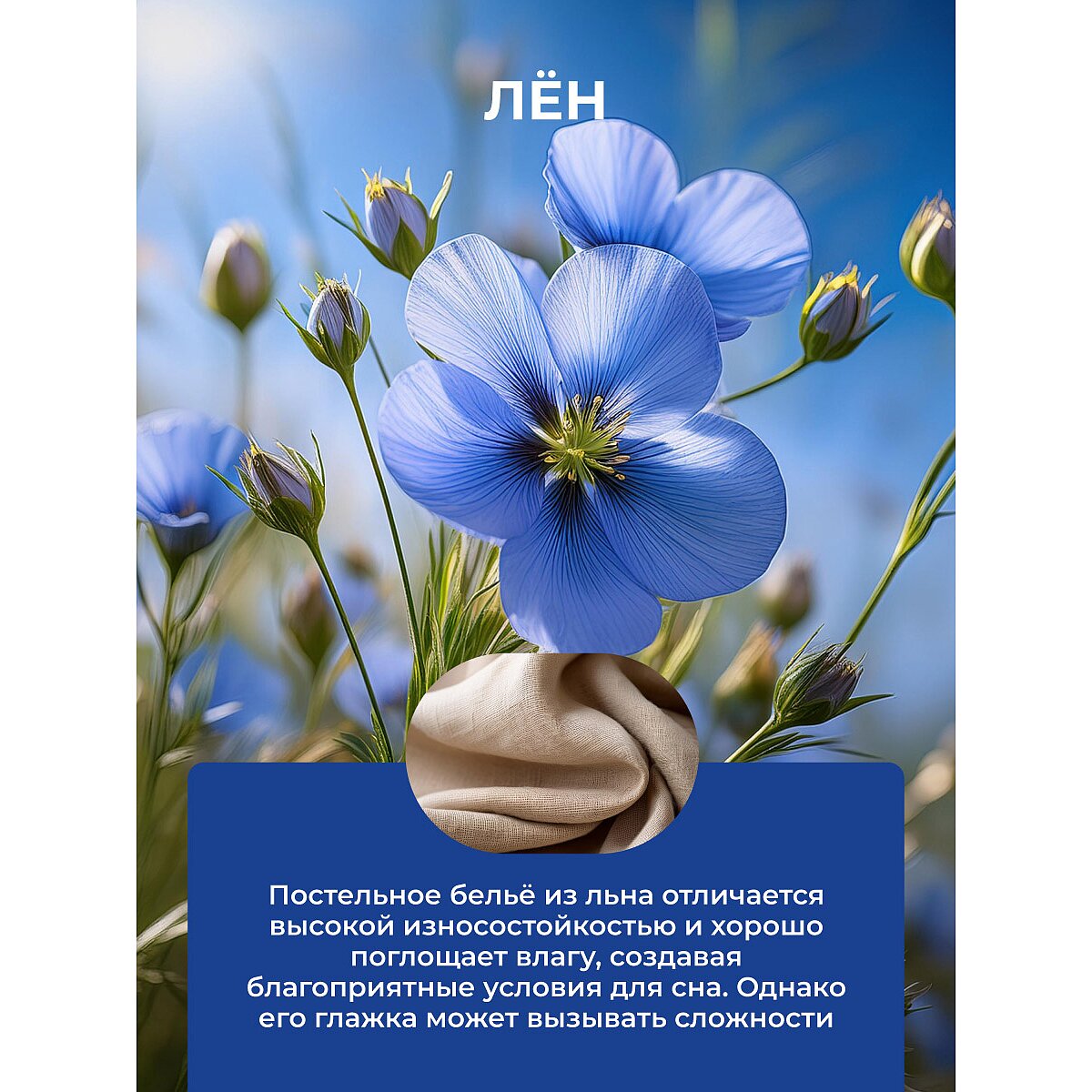К плюсам льна можно отнести то, что льняное постельное белье отлично поглощает влагу, создавая благоприятные условия для комфортного сна. А летом создает приятное ощущения слегка прохладной поверхности постели. Кроме того, издавна лён известен своими оздоравливающими свойствами.