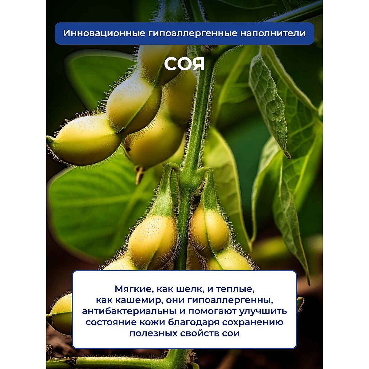 Получаемый на основе растительных протеинов бобов сои материал антибактериален, гипоаллергенен, сохраняет аминокислоты и полезные свойства сои. Так что соевым одеялам приписывают даже способность стимулировать обмен веществ, уменьшая воспалительные процессы и помогая сохранять молодость кожи.