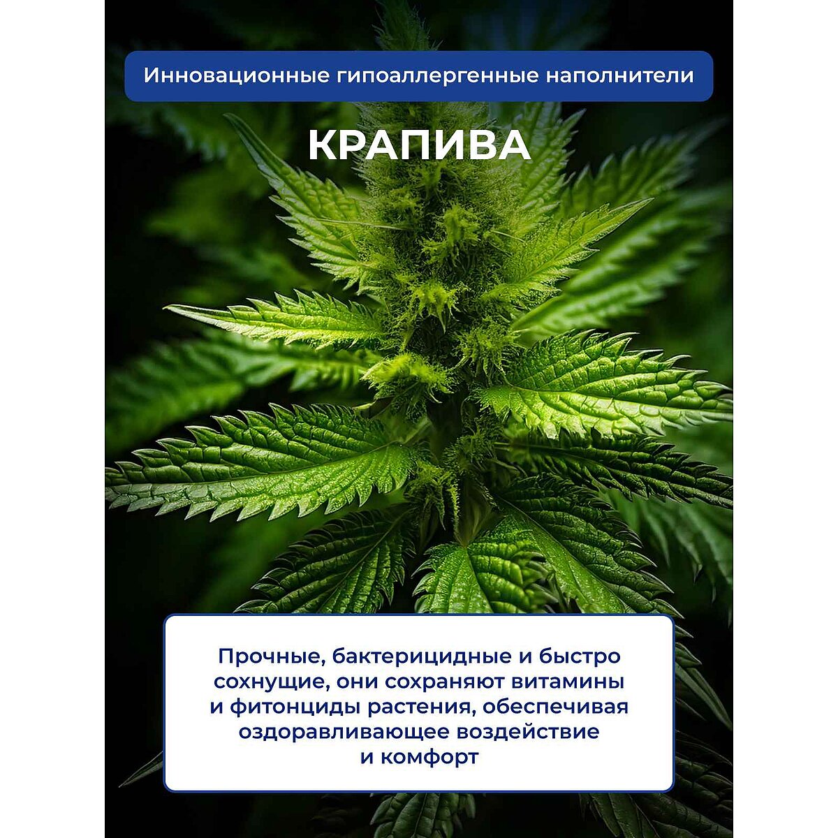Одеялам из крапивы также свойственно оздоравливающее воздействие. Такой наполнитель сохраняет природные свойства, витамины и фитонциды растения, издавна хорошо известного во многих странах своим благотворным влиянием на организм. Волокно крапивы прочное, бактерицидное, легко стирается и быстро сохнет.