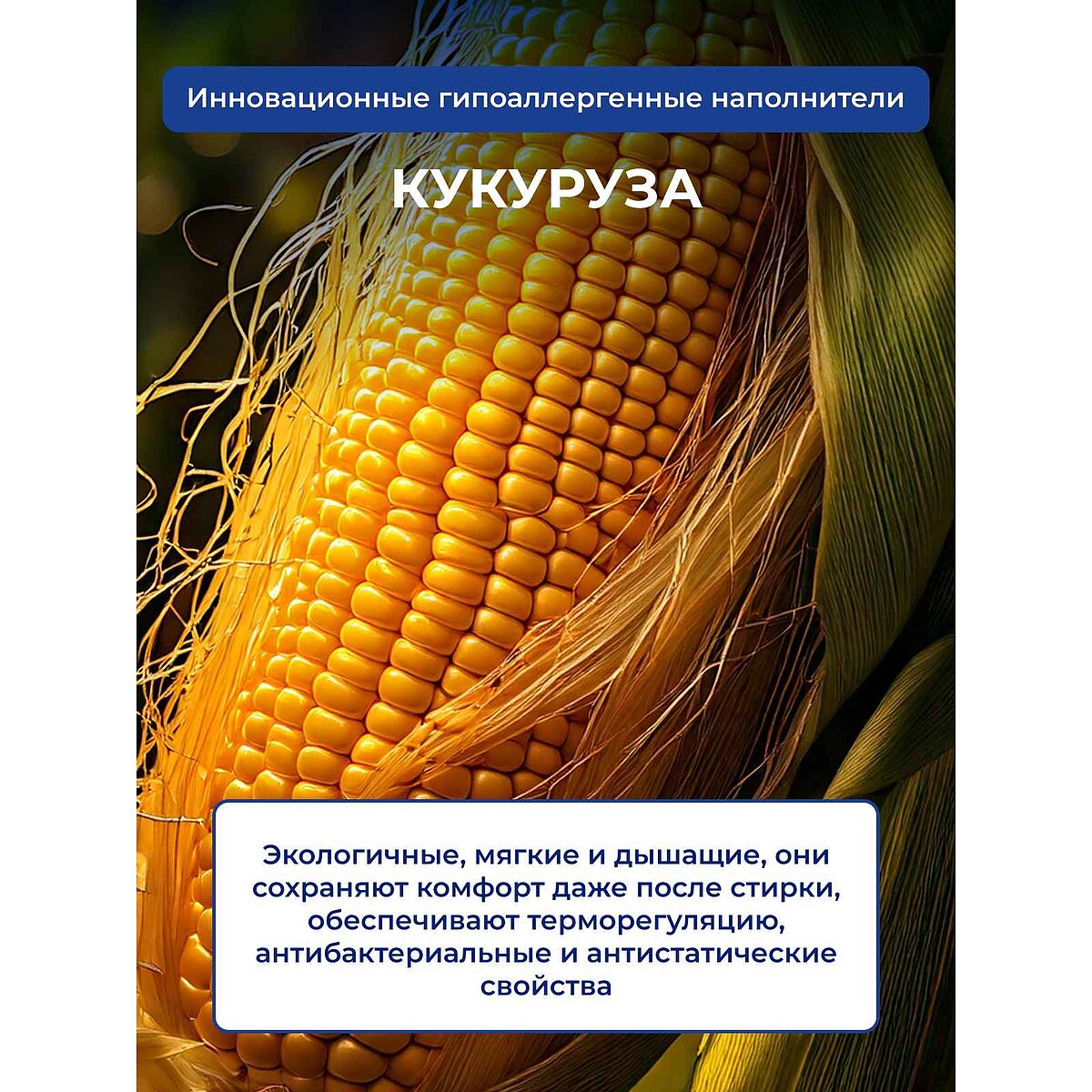 Для кукурузного одеяла экологически чистое волокно производят из зерен маиса, вытягивая его после ферментации кукурузного крахмала. По свойствам оно — мягкое и воздушное, при этом достаточно упругое, чтобы одеяло не теряло своей комфортности даже после стирки.