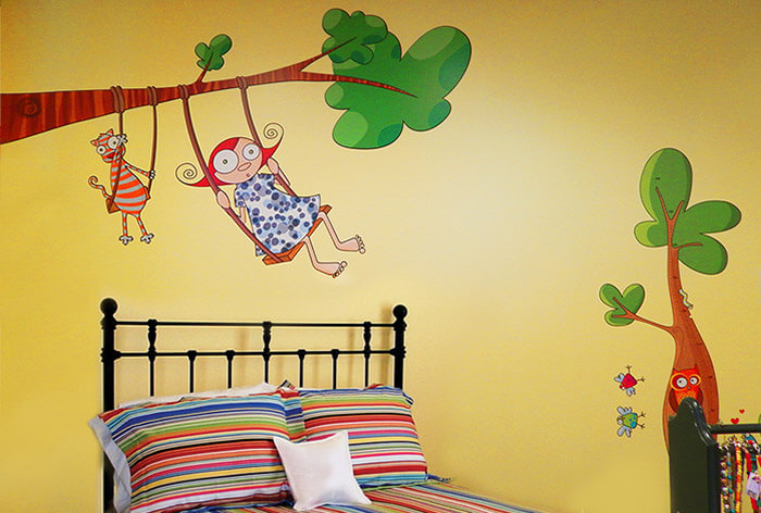 Такая идея отлично выглядит в молодежной спальне и как изголовье к детской кровати.