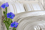 Постельное белье из льна считается самым экологичным, износостойким и гигиеничным. По прочности лен превосходит другие материалы, отлично впитывает влагу и пропускает воздух, регулирует температуру тела человека во сне и обладает антисептическими свойствами. При стирке ткань не садится и не линяет. На ощупь льняное постельное белье может показаться жестким по сравнению с шелковым или сатиновым из-за характерных узелков на поверхности, но, тем не менее, оно весьма комфортно. Единственный недостаток льна заключается в том, что его сложно гладить. Потому часто можно увидеть постельное белье лен+хлопок, которое намного проще утюжить.