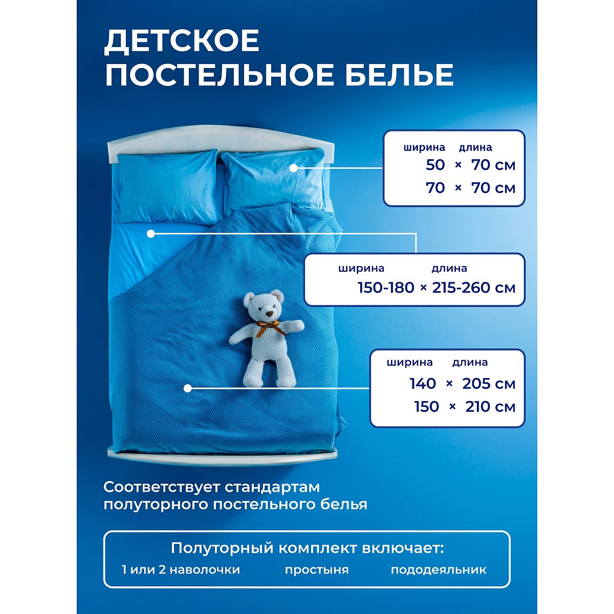 Детское постельное белье соответствует стандартам полуторного постельного белья.