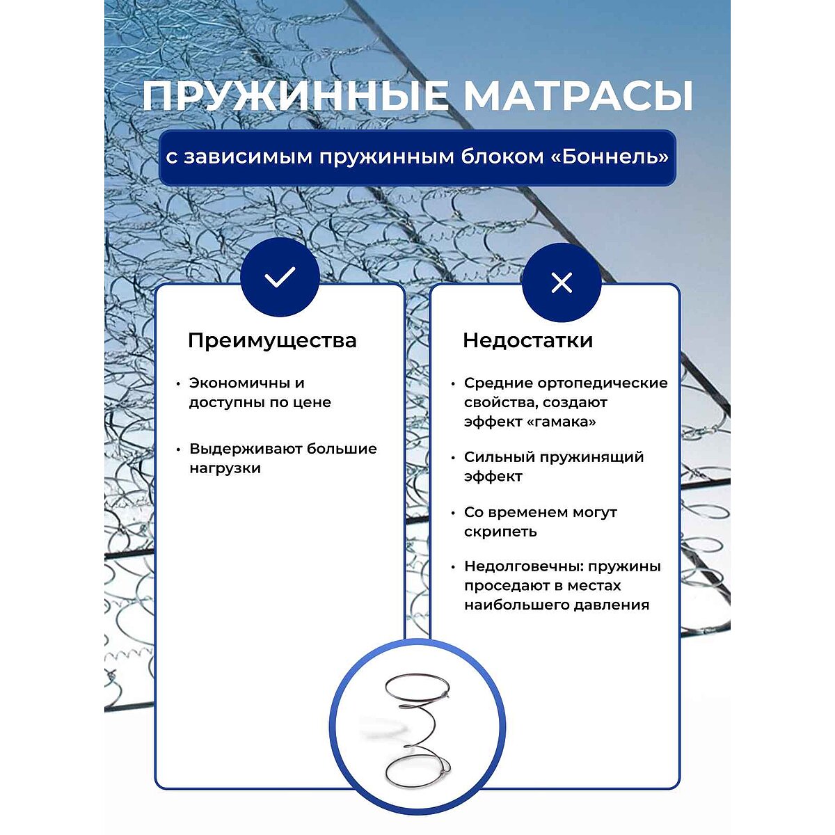 Матрасы с зависимым пружинным блоком «Боннель»: