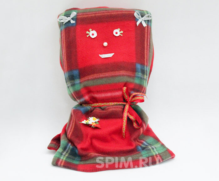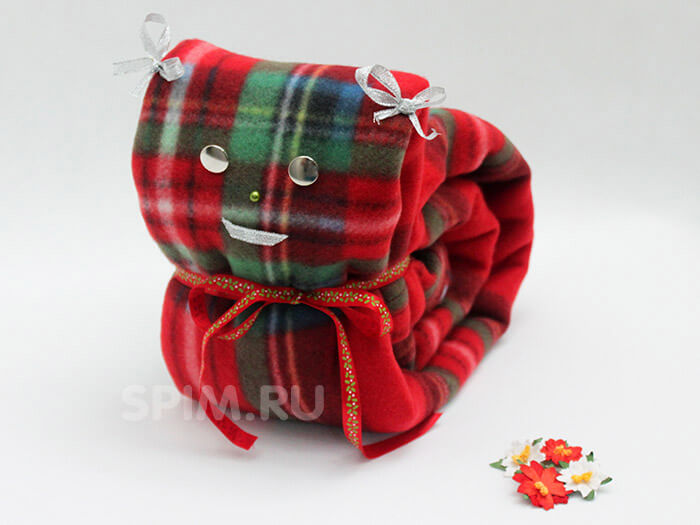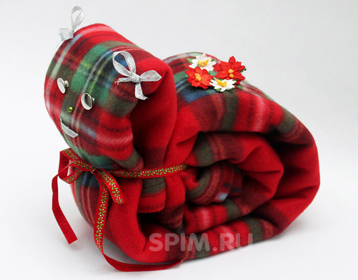 3. Обернув двумя углами остальную часть пледа сформируйте голову.