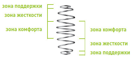 Особенная форма каждой пружины позволяет выделить в ней несколько рабочих зон: