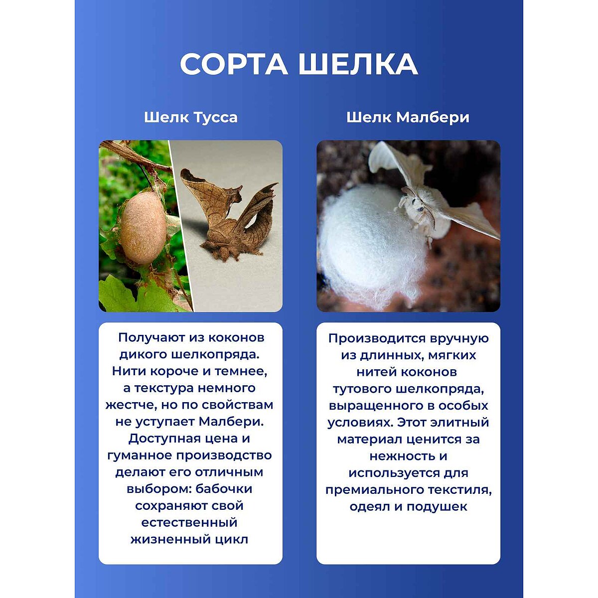 Для производства домашнего текстиля и постельных принадлежностей используется два сорта шелка: